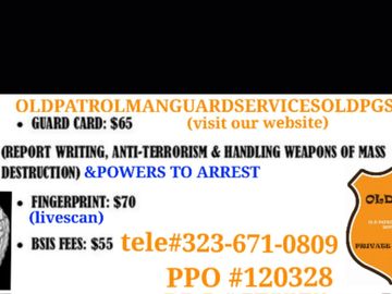 We @ OLDPGS are State licensed Security services company able to issue out guard cards at our Old West Division...